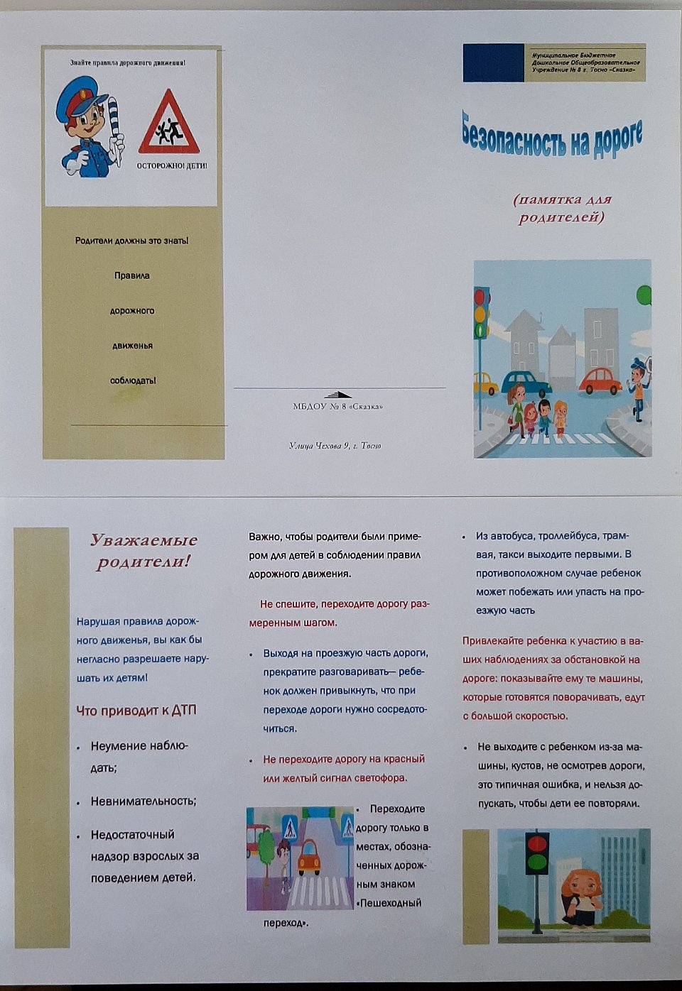 Памятка для родителей о ПДД в виде буклета