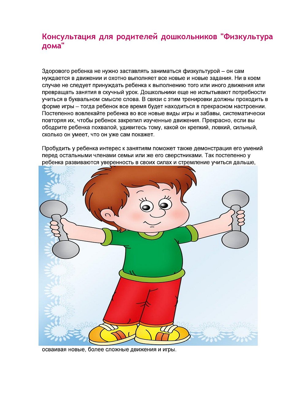 В публикации говорится о пользе физических упражнений для дошкольников