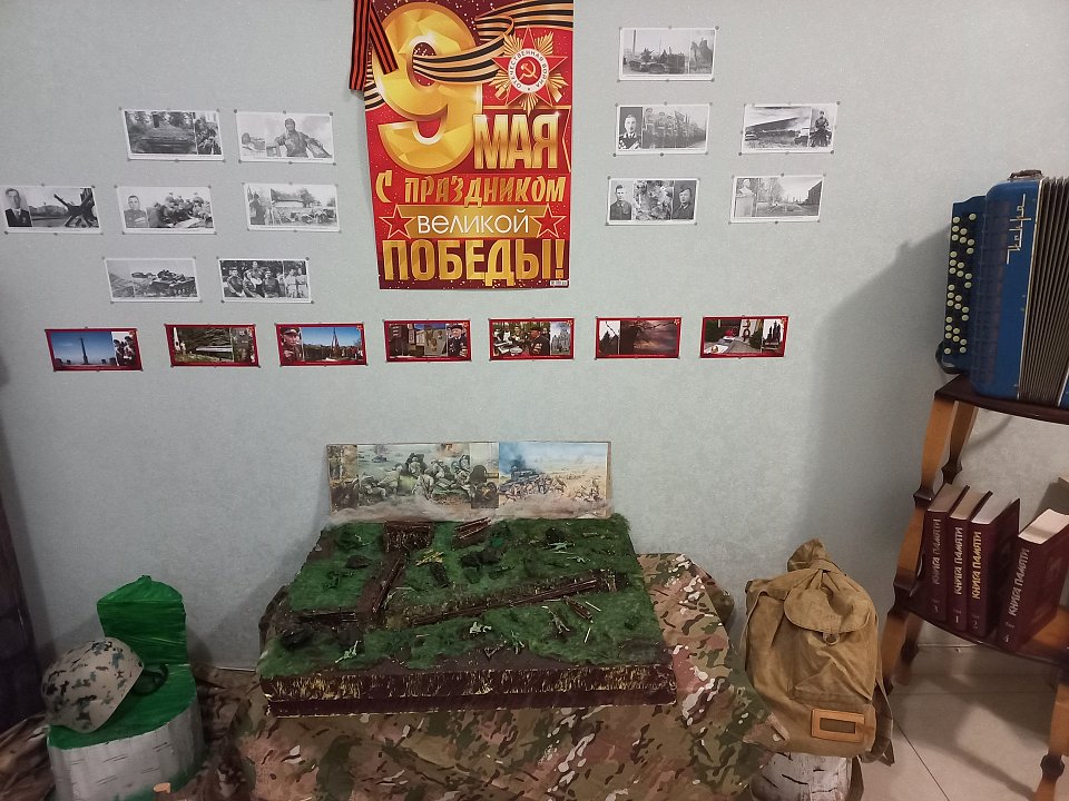 Оформление стенда ко Дню Победы, изготовление диорамы военных событий, предметы, фотографии военных лет