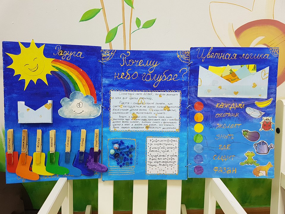Лэпбук "Почему небо голубое" используется на занятиях по формированию целостной картины мира для детей среднего дошкольного возраста. Подходит для изучения цветов спектра, дает простое объяснение на вопрос "Почему небо голубое?". В лэпбуке есть 3 развивающие игры: игра - сортер по цветам, игра - пазл и игра - "Какого цвета".