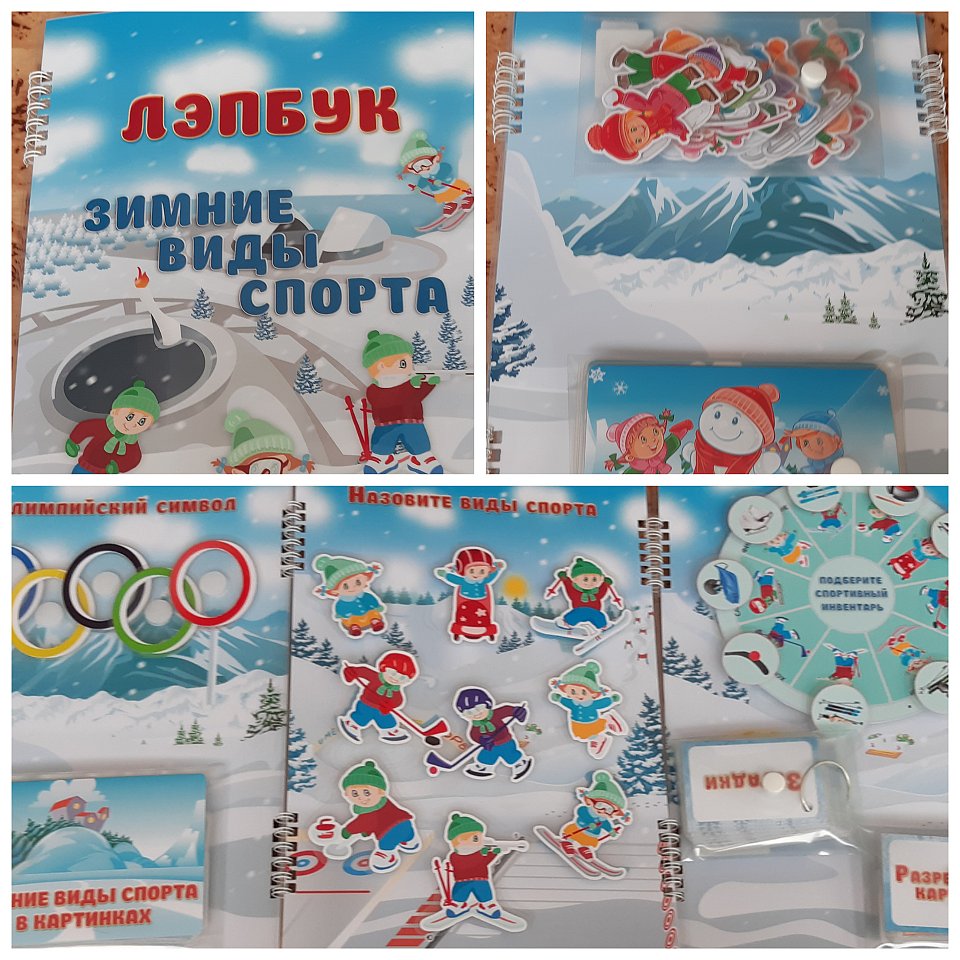 Лэпбук по теме "Зимние виды спорта" содержит в себе Олимпийский символ, Зимние виды спорта в картинках,Подберите спортивный инвентарь, Загадки, Найдите пару с изображением зимних видов спорта.