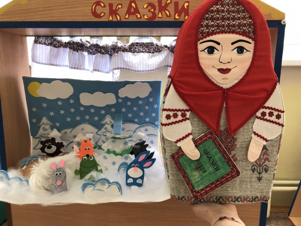 Используется старый добрый забытый фланелеграф. Это уже почти театр! Хорошо подходит для "экранизации" сказок и других историй для детей.