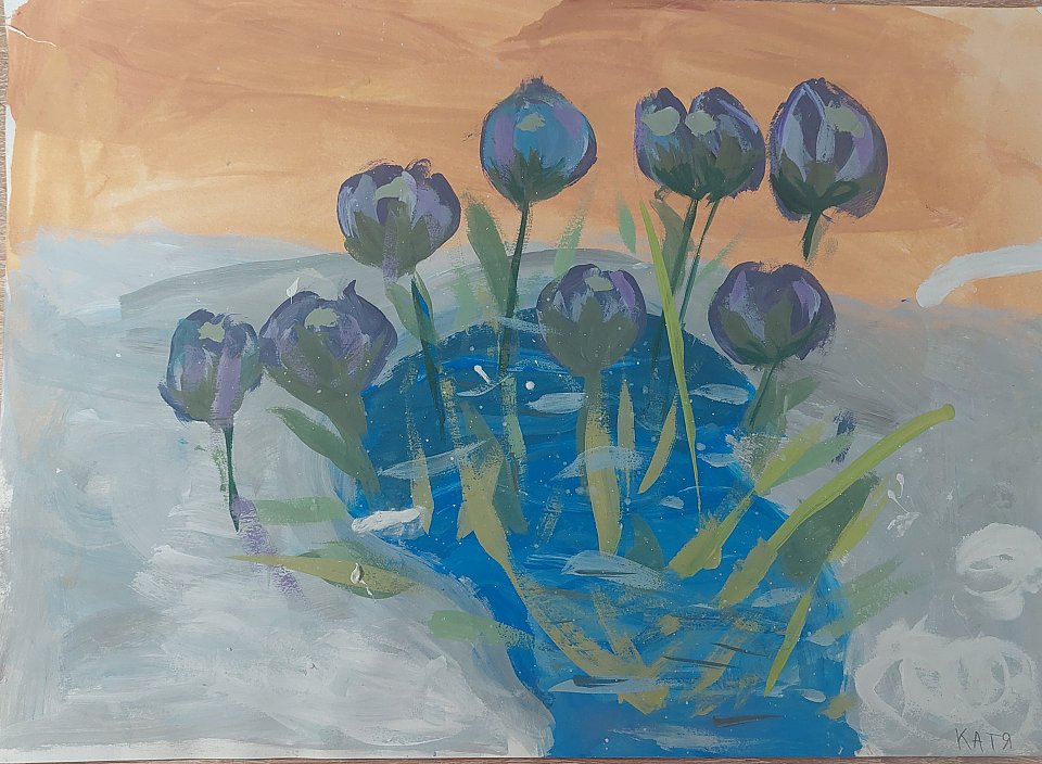 Работа выполнена в смешанной технике, гуашью.