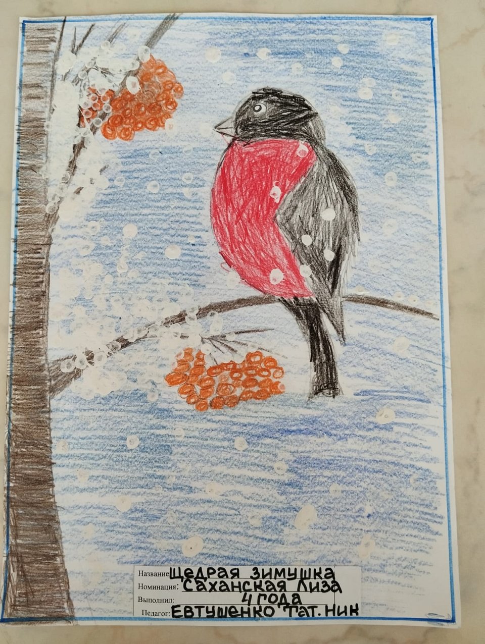Елизавете 4 года. Для рисунка использовала цветные восковые мелки.