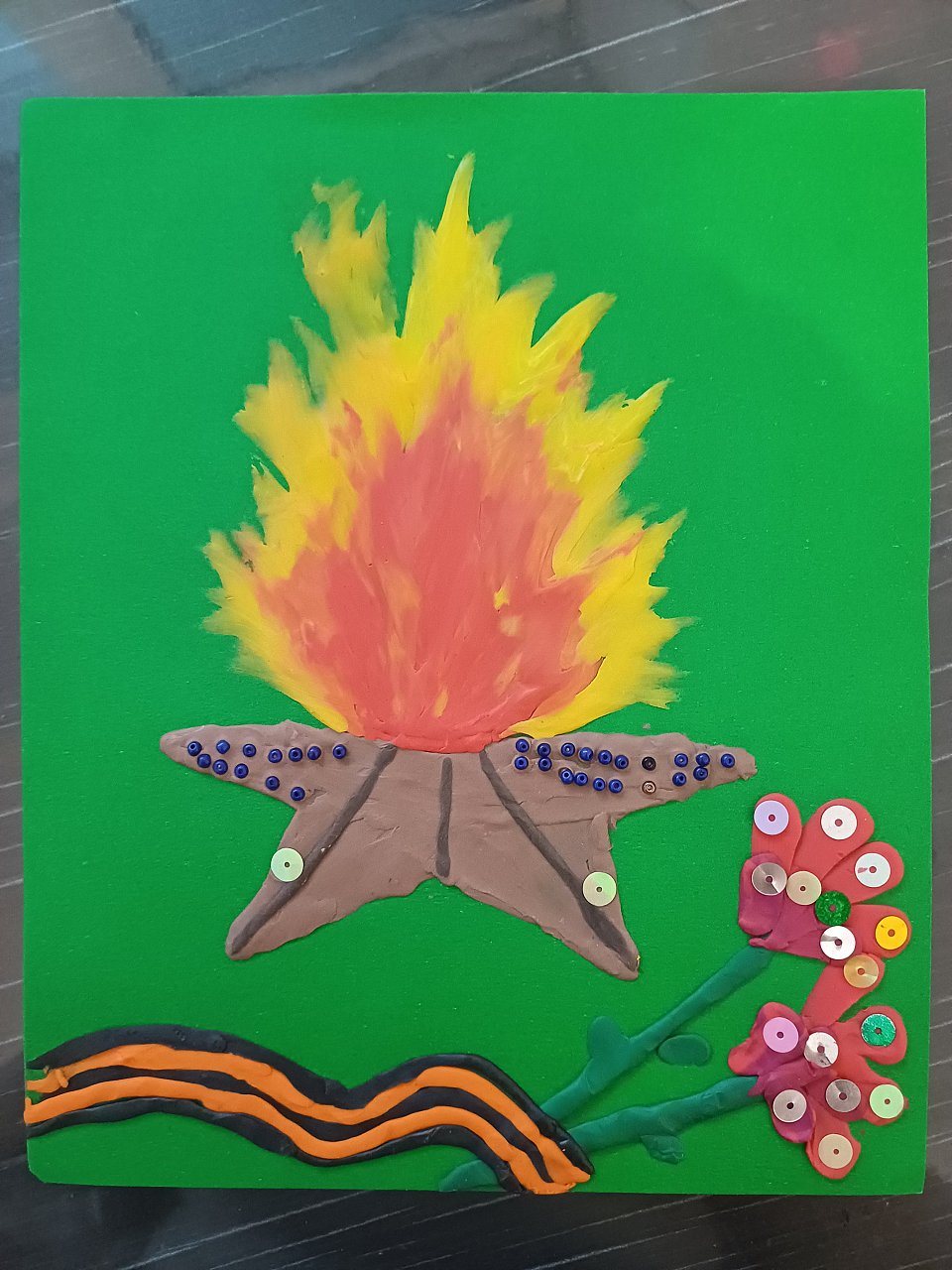 5 лет, техника исполнения - пластилиновая живопись, материалы: пластилин, картон