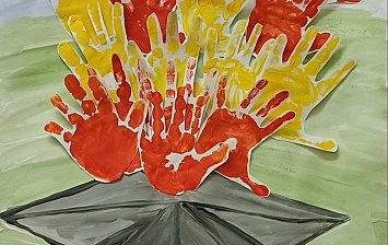 возраст 6 лет, пластилинография, использованный материал СD диски и пластилин.