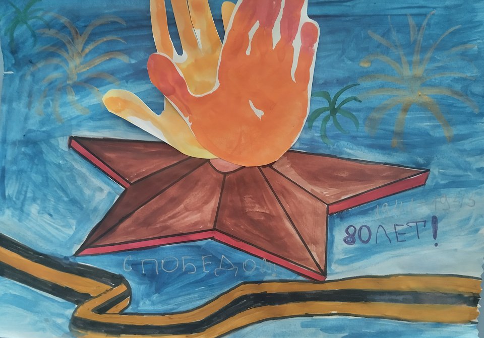 Вечный огонь нарисован гуашью и с помощью нетрадиционной техники