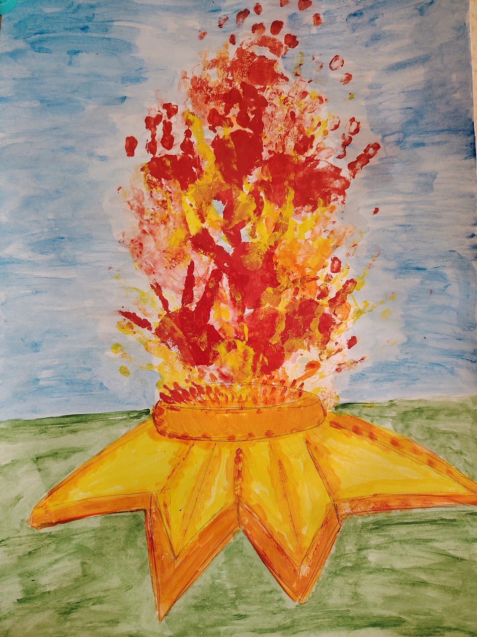 Коллективная работа, дети 3-4 года, нетрадиционная техника рисования - отпечатки ладошек, лист бумаги А2, гуашь