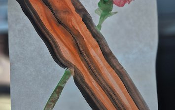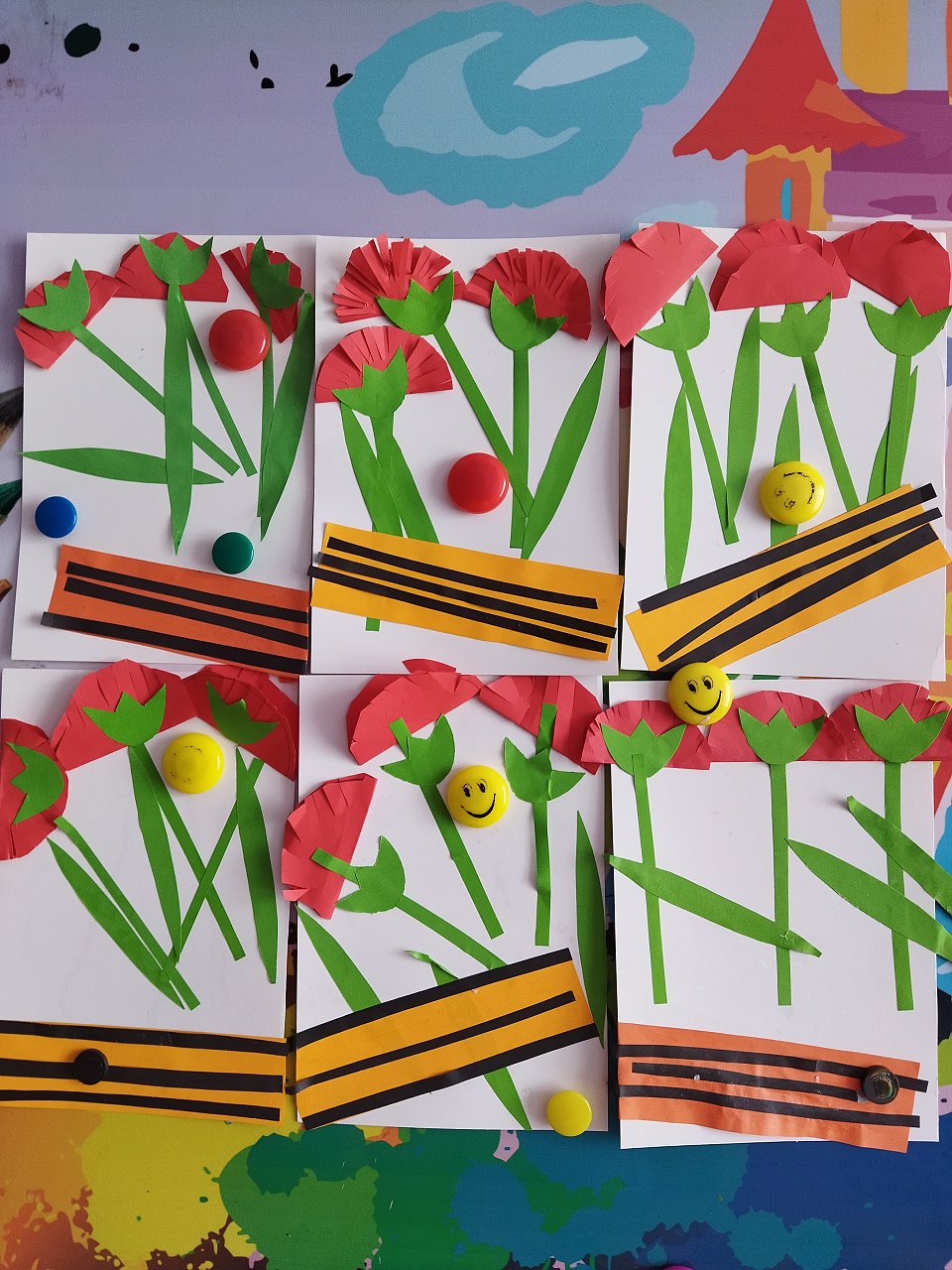 Работа выполнена из цветной бумаги, картона.