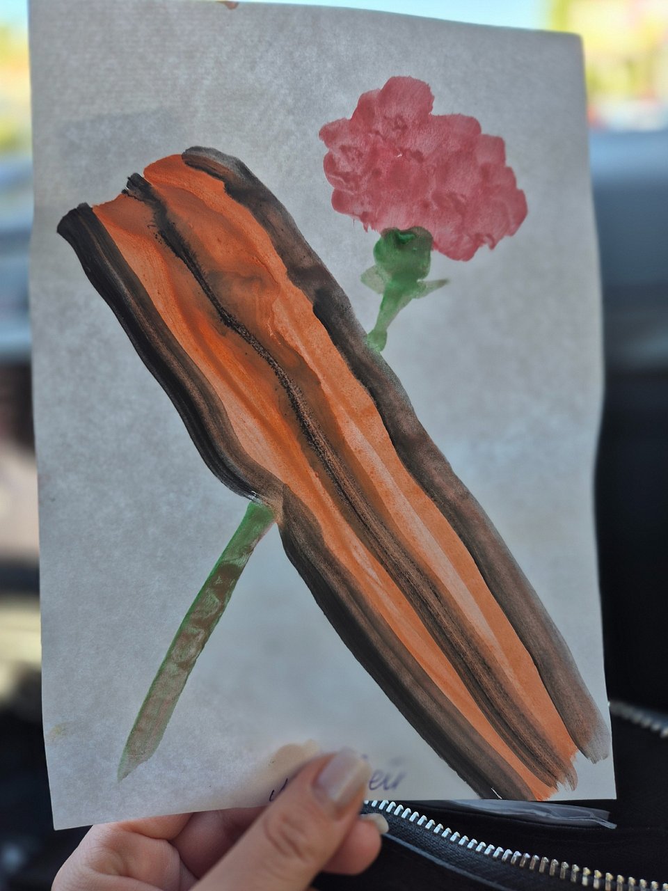 5 лет. Рисунок выполнен на бумаге, использовали кисть, краски.