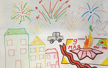 Аппликация выполнена с использование картона (основа), гафрированной бумаги, силуэтов голубей, георгиевской ленты