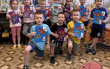 Поделка: коробка краски кисти цветная бумага шаблон ножницы клей