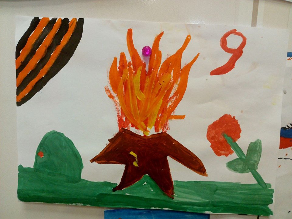 в этой работе ребенок нарисовал вечный огонь и возложение цветка.