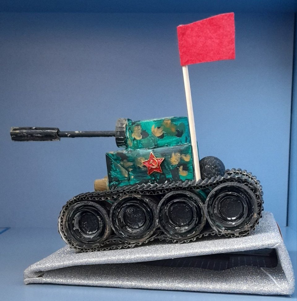 Танк Победы, 5 лет, картон+бумага, бросовый материал
