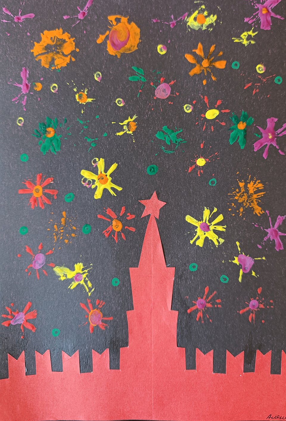 6 лет. Аппликация, рисование трубочками. Цветная бумага, гуашь.