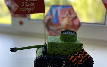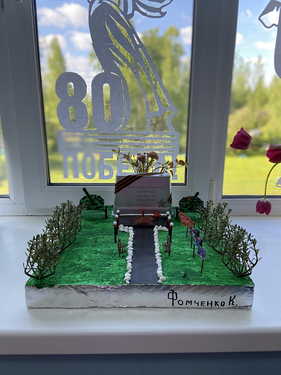 Использованные материалы : пенопласт , искусственные цветы, спички, декоративный камень , бумага для изготовления пушек.