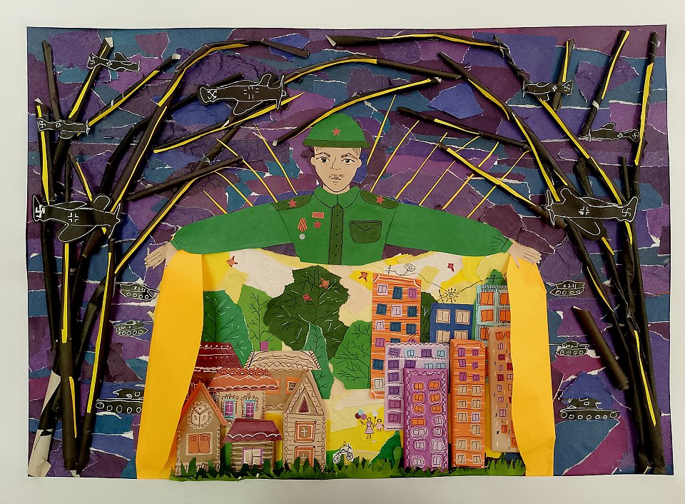 10 лет, аппликация, цветная бумага.