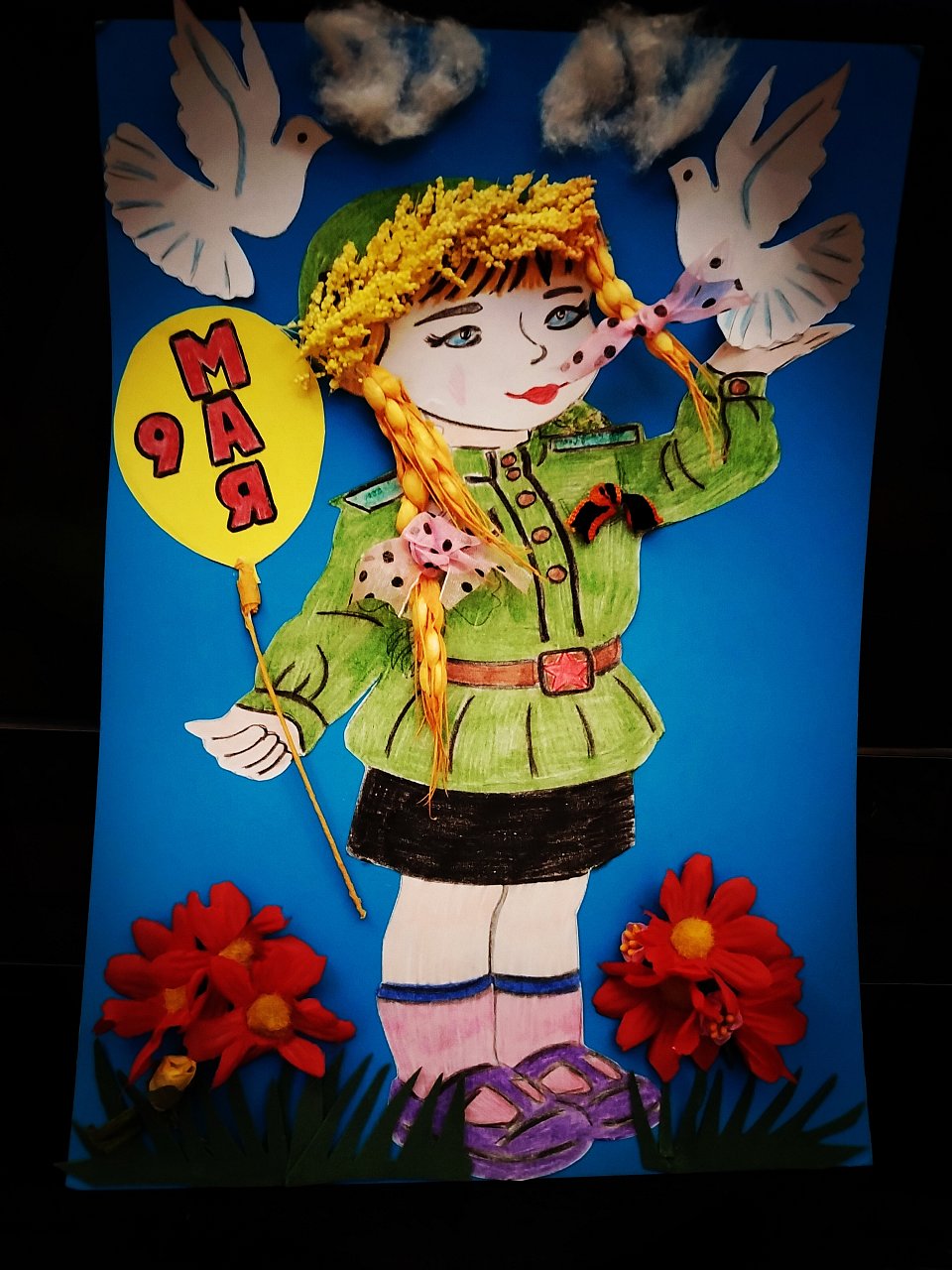 9лет участнику. Использовал бумагу, картон, клей, вата, какрандаши