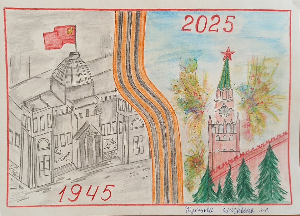 Рисунок выполнен с использованием карандашей и восковых мелков.