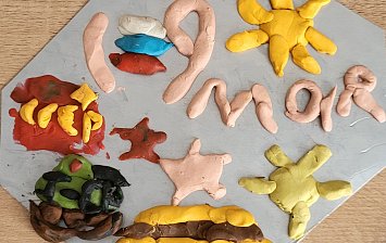 Керамика (природная глина), работа с цельным куском глины с приставными деталями, обжиг в высокотемпературной печи при температуре +910 градусов. Роспись акварельные краски и финишное покрытие -лак.