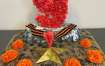 Цветная бумага, гвоздики из гофрированнной бумаги, рисунки.