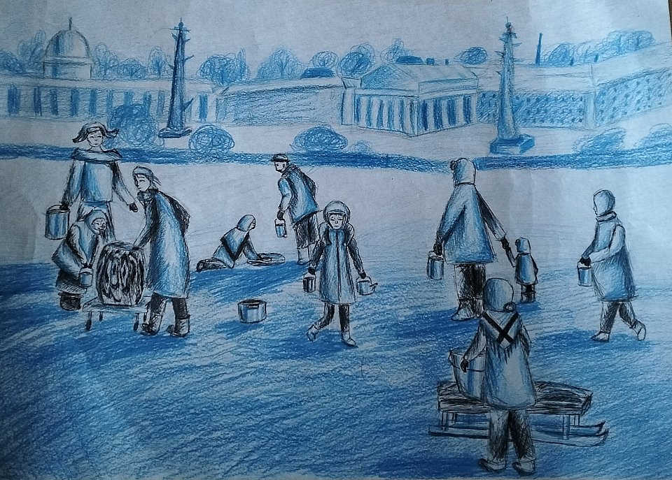 11 лет, графика, цветной карандаш, гелиевая черная ручка