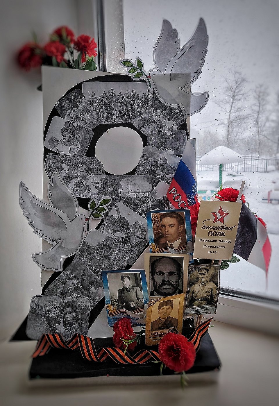 Аппликация, использование фото родных и близких.