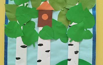 Коллективная работа, возраст детей 4-6 лет, аппликация из бумаги, клей, бумага, ножницы.