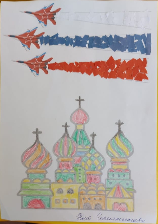 Юля 6 лет. Обрывная аппликация из цветной бумаги