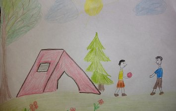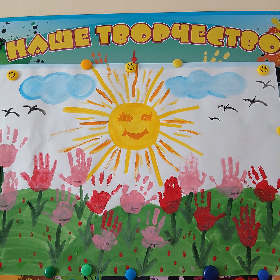 Возраст детей 4 годика. Техника исполнения работы; нетрадиционные рисование, ватман, краски гуаш разного цвета, кисточки