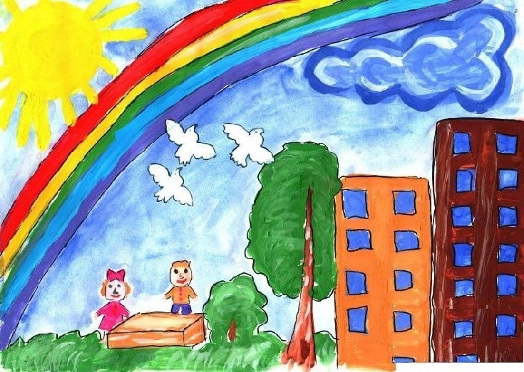 Лето — это любимая пора для детей и взрослых. Мы с Ульяной решили нарисовать лето. В своем рисунке она показала, каким его представляет. Девочка нарисовала солнце, радугу, много цветов, деревья — всё, чем радует нас лето. Уля сумела передать всю яркость летних красок.