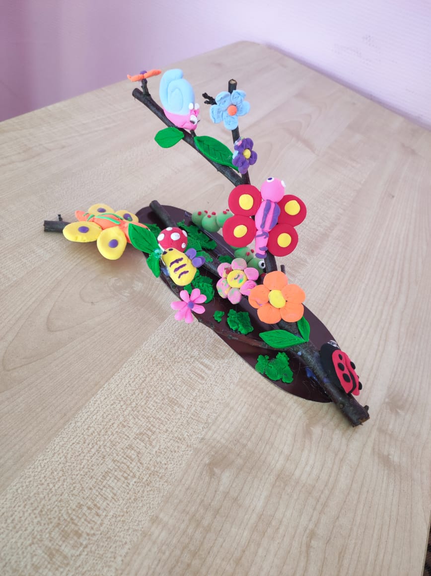 6 лет. Поделка из природного материала и воздушного пластилина.