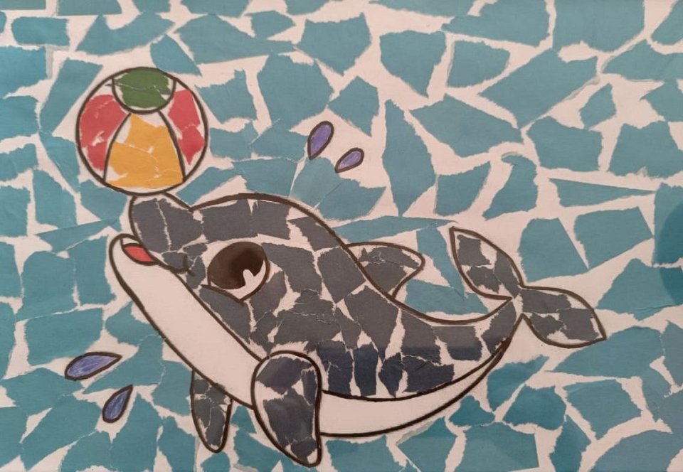 Аппликация при помощи картона и цветной бумаги ребенком трёх лет
