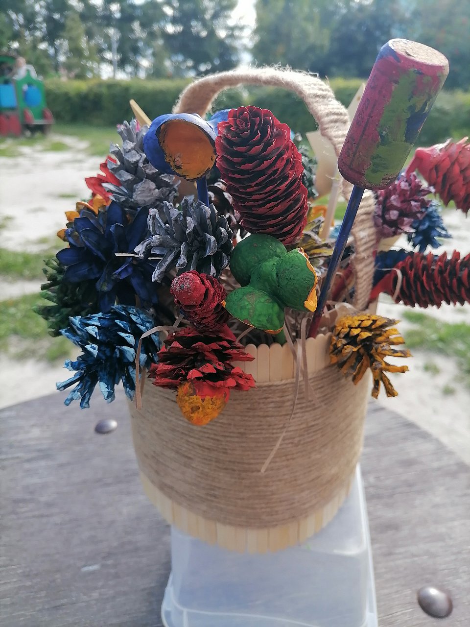 Коллективная работа детей 5-6 лет . Поделка из бросового материала : Шишки, пробки, палочки от мороженного ит.д.