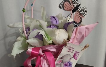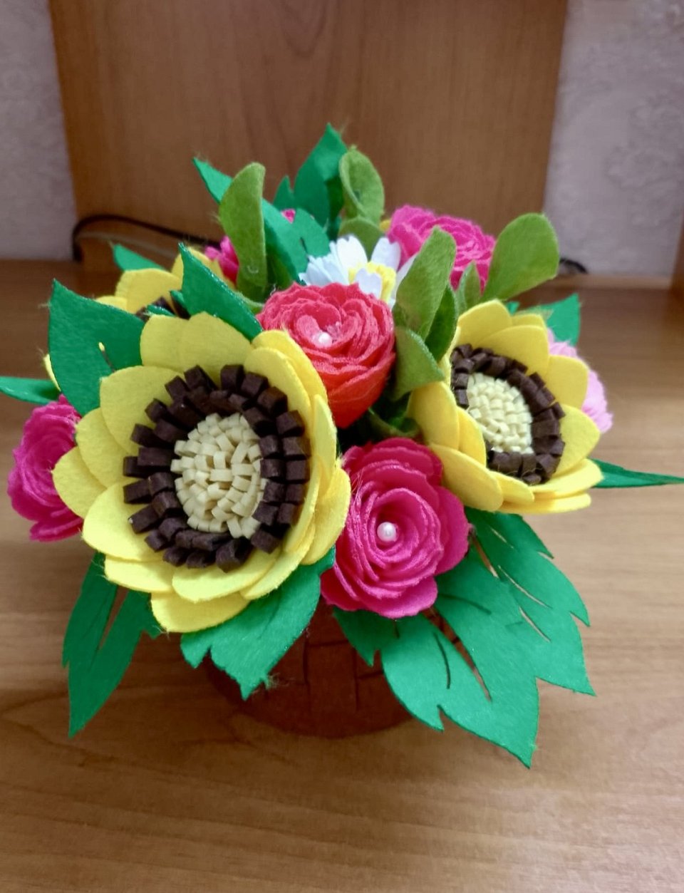 Возраст участника - 6 лет. Работа из фетра. Использованные материалы - клей, фетр, бусины.