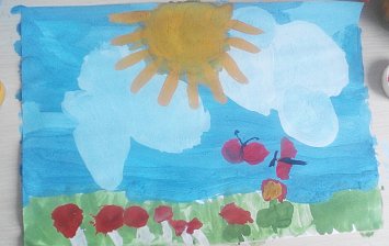 Савелий 4,5 года, Аппликация с элементами рисования. гуашь, бумага и картон.