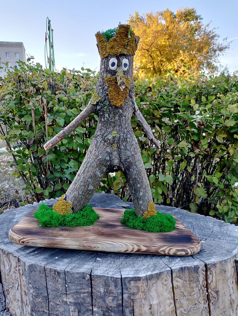 Поделка сделана из натуральных материалов: дерево,мох,кора .