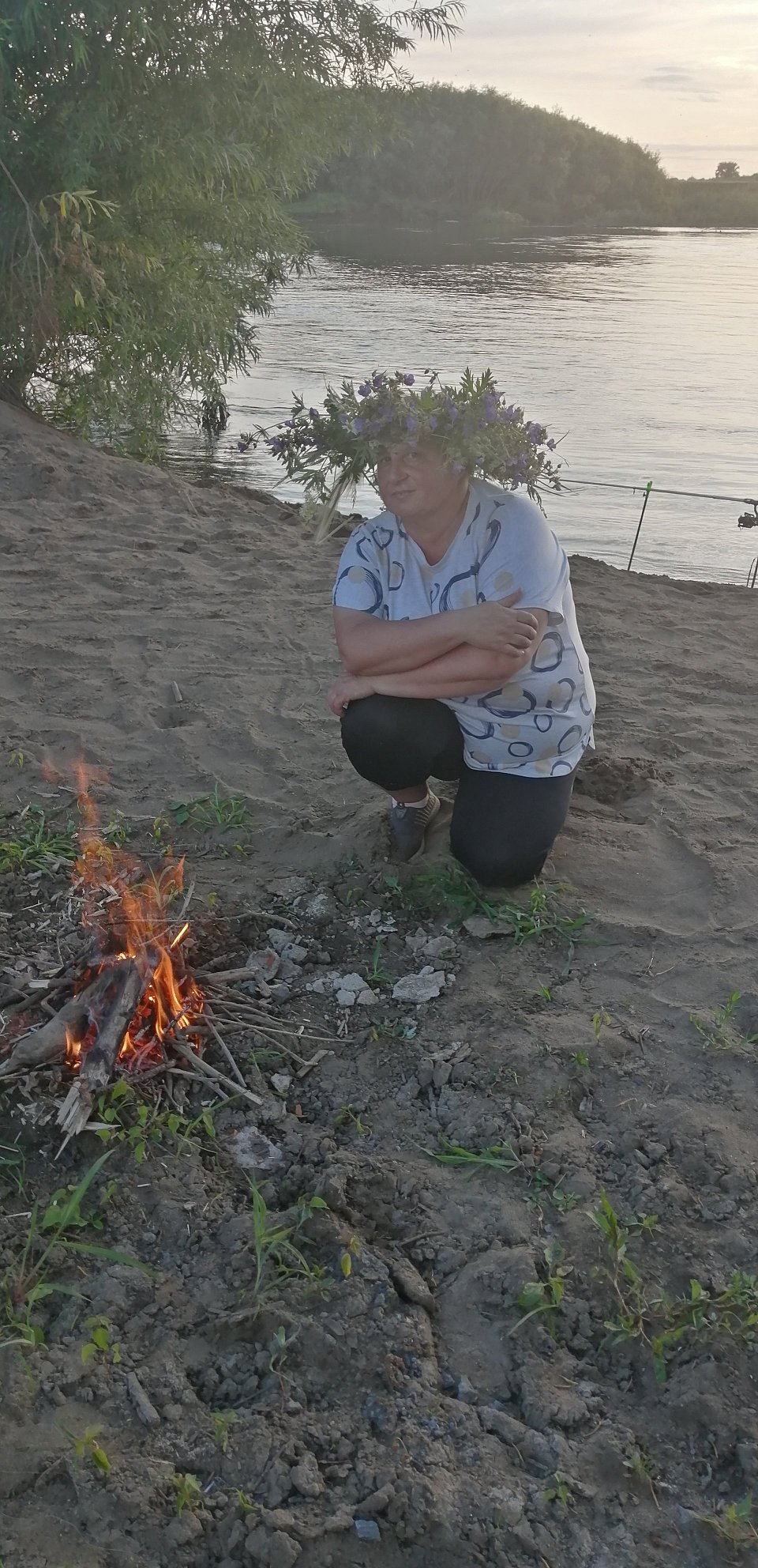 Фотография. Традиция на Иван Купала. Венок,костёр, речка. Прекрасные ощущения и приятные моменты в жизни. Подарила себе праздник.