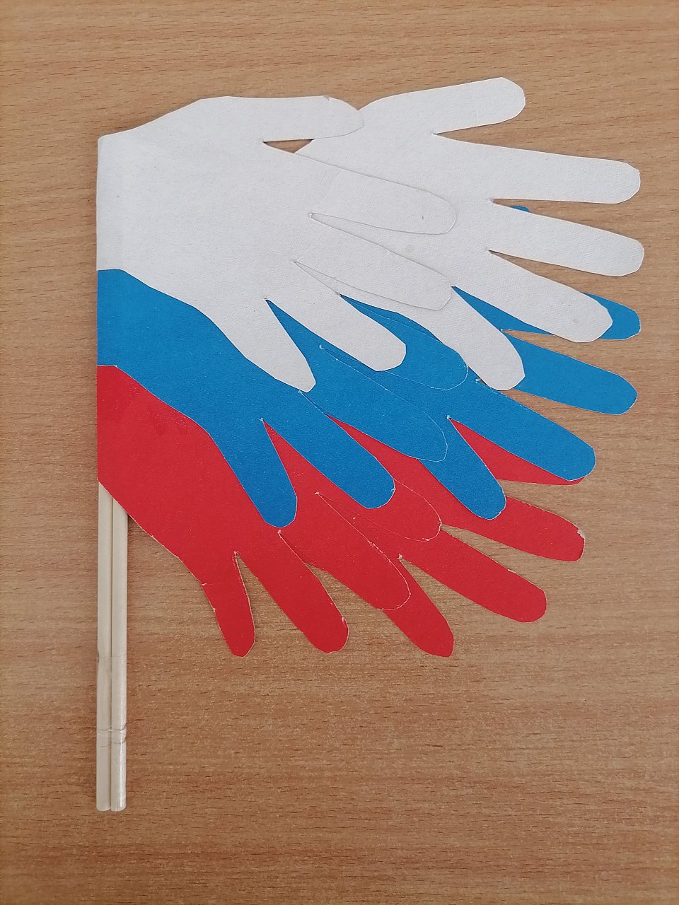 5 лет. Поделка из цветного картона, шпажки, клей.