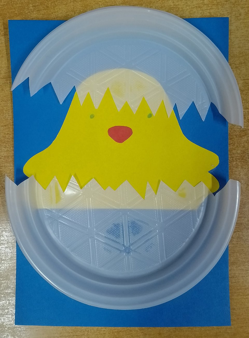 возраст участника 3 года, поделка сделана из картона, цветной бумаги и пластиковой тарелки