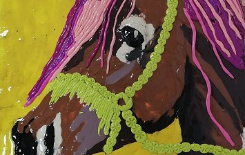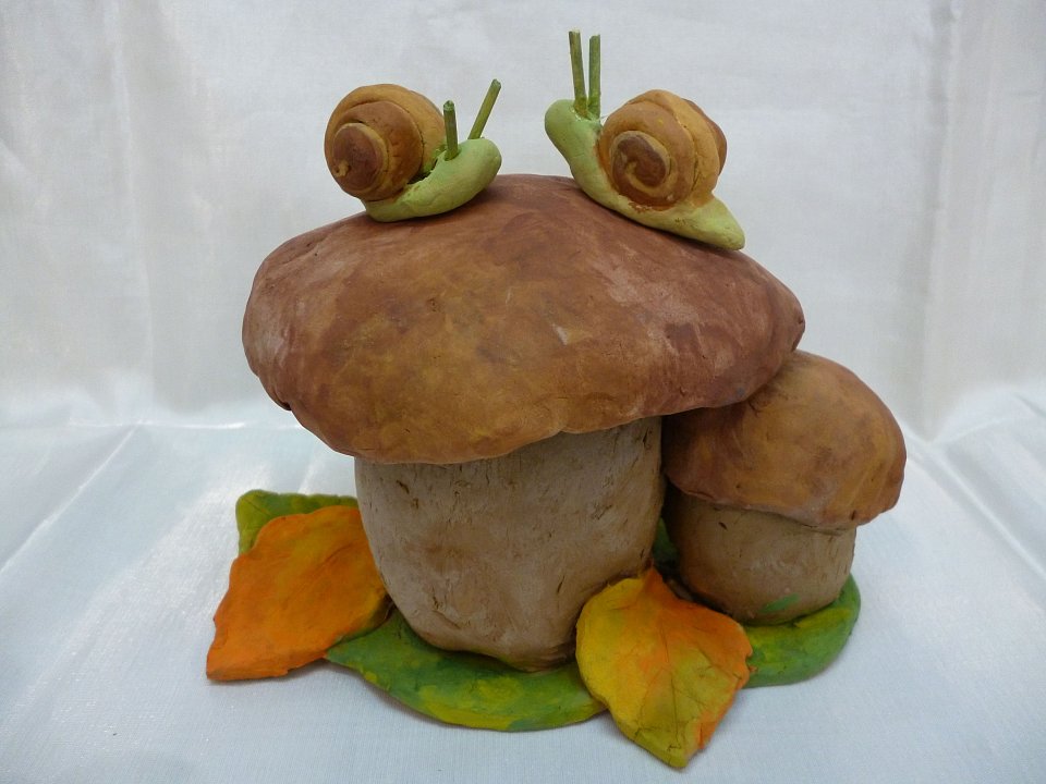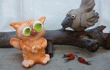 Работа слеплена из глины, обожжена и расписана гуашевыми красками.