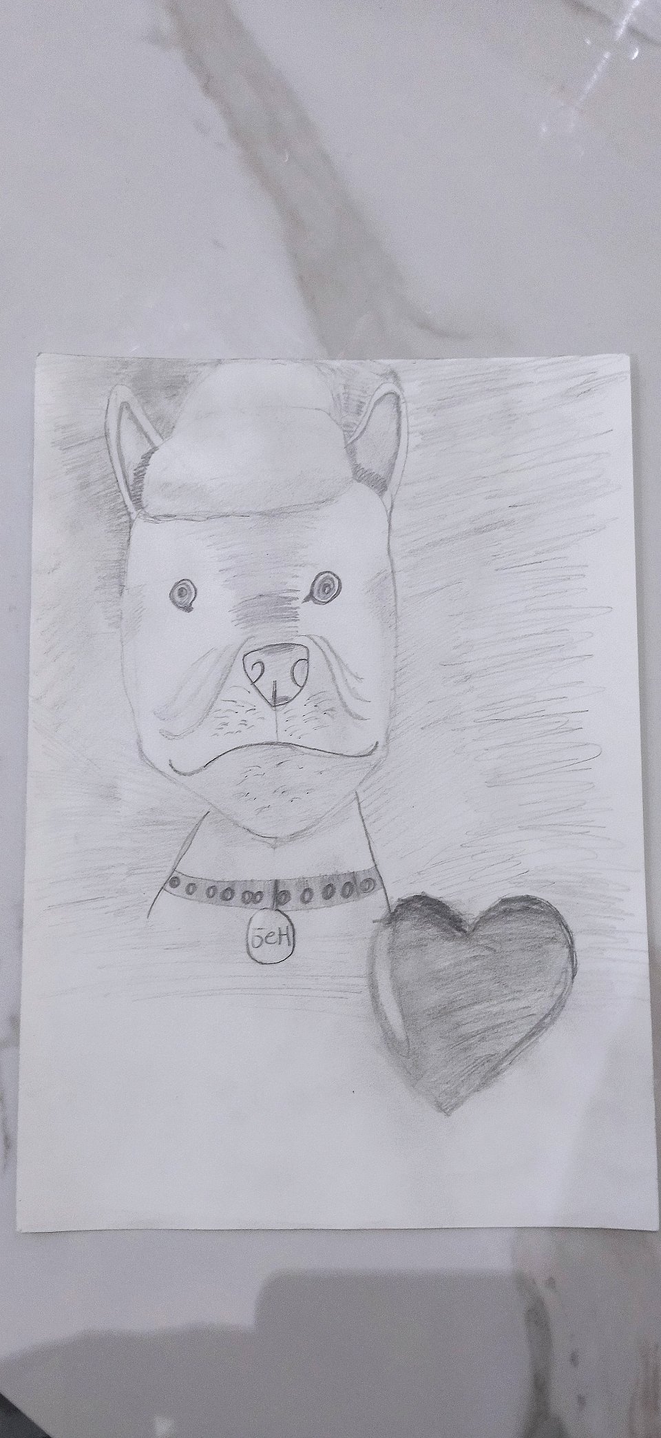 Я Ксения, мне 10 лет, рисунок выполнен в карандашной технике, для него мне потребавались два простых карандаша М и ТМ, ластик, точилка