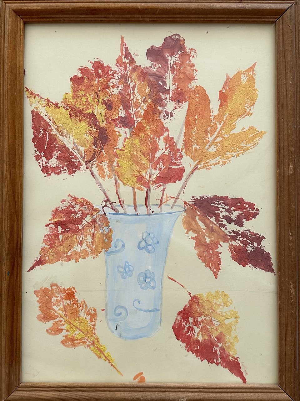 Рисование отпечатками листьев. В этой технике используются натуральные листья деревьев. Краску лучше наносить на них со стороны прожилок, так получается более фактурный отпечаток.