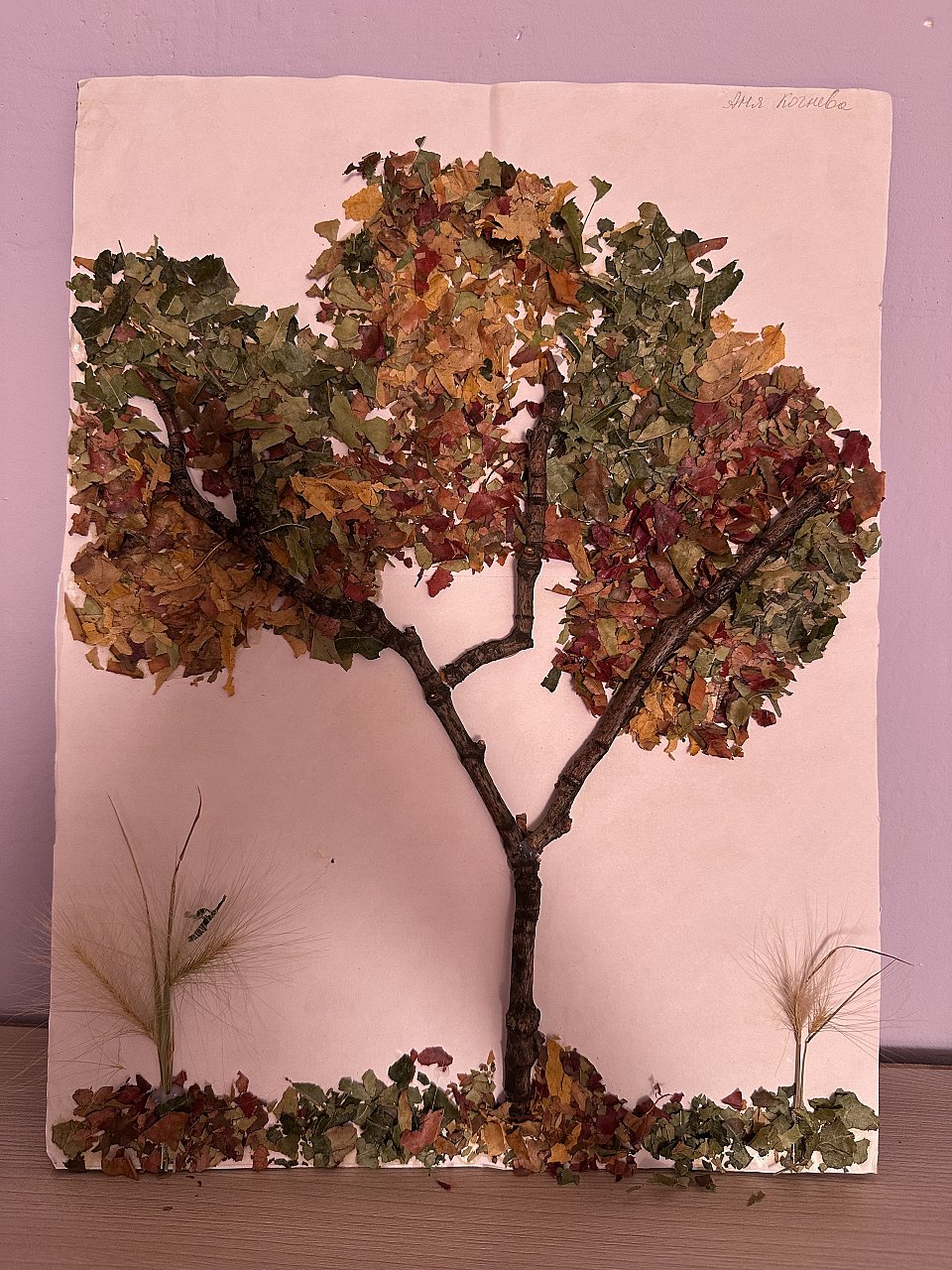 Веточки деревьев , листочки насыпанные на клеевую основу