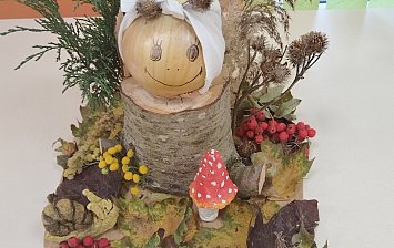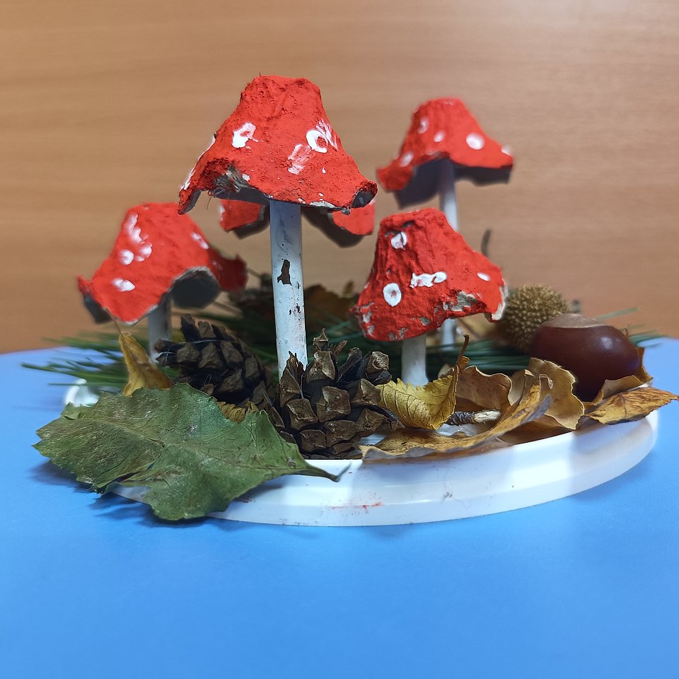 3г аппликация, яичный лоток, клей, краска, природный материал (листья, шишки, каштаны