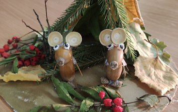 6 лет. Поделка выполнена в технике объемная аппликация с добавлением декоративных элементов, из цветного картона, и скорлупы грецкого ореха, шишек, желудей