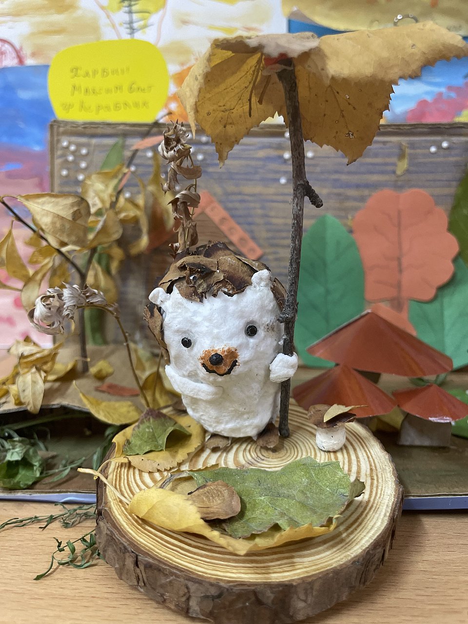 4 года, ежик выполнен из ваты, использованы природные материалы