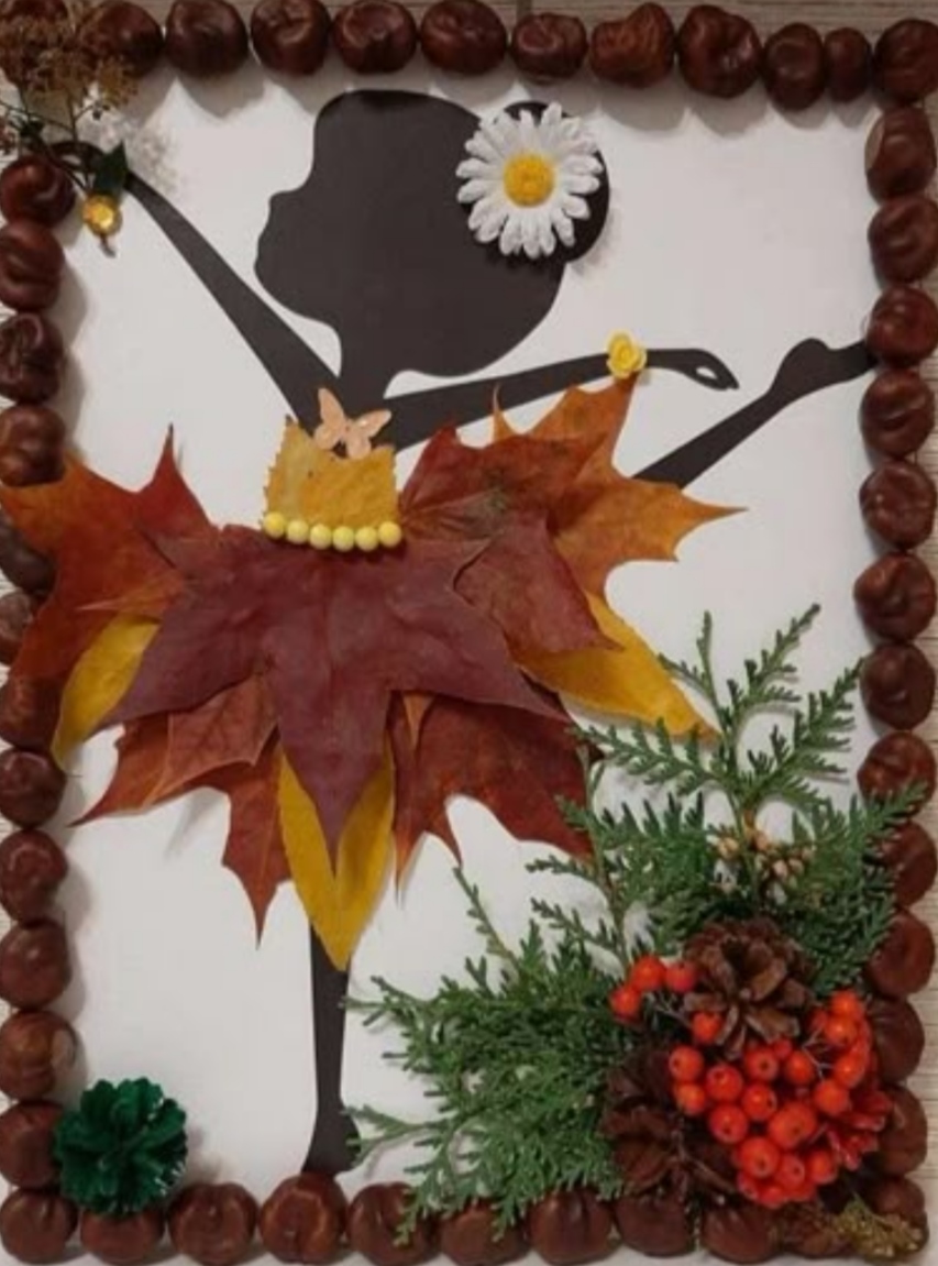 Александре 3 года, накладная аппликация, рябина и каштаны.
