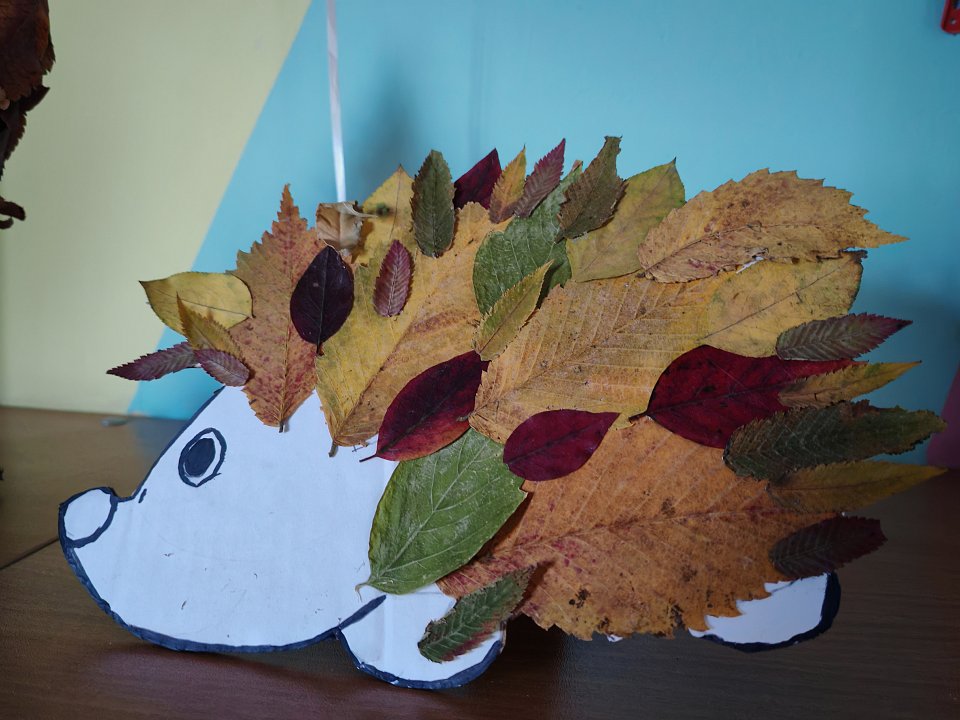 Работа сделана припомощи картона, листочек и клея.