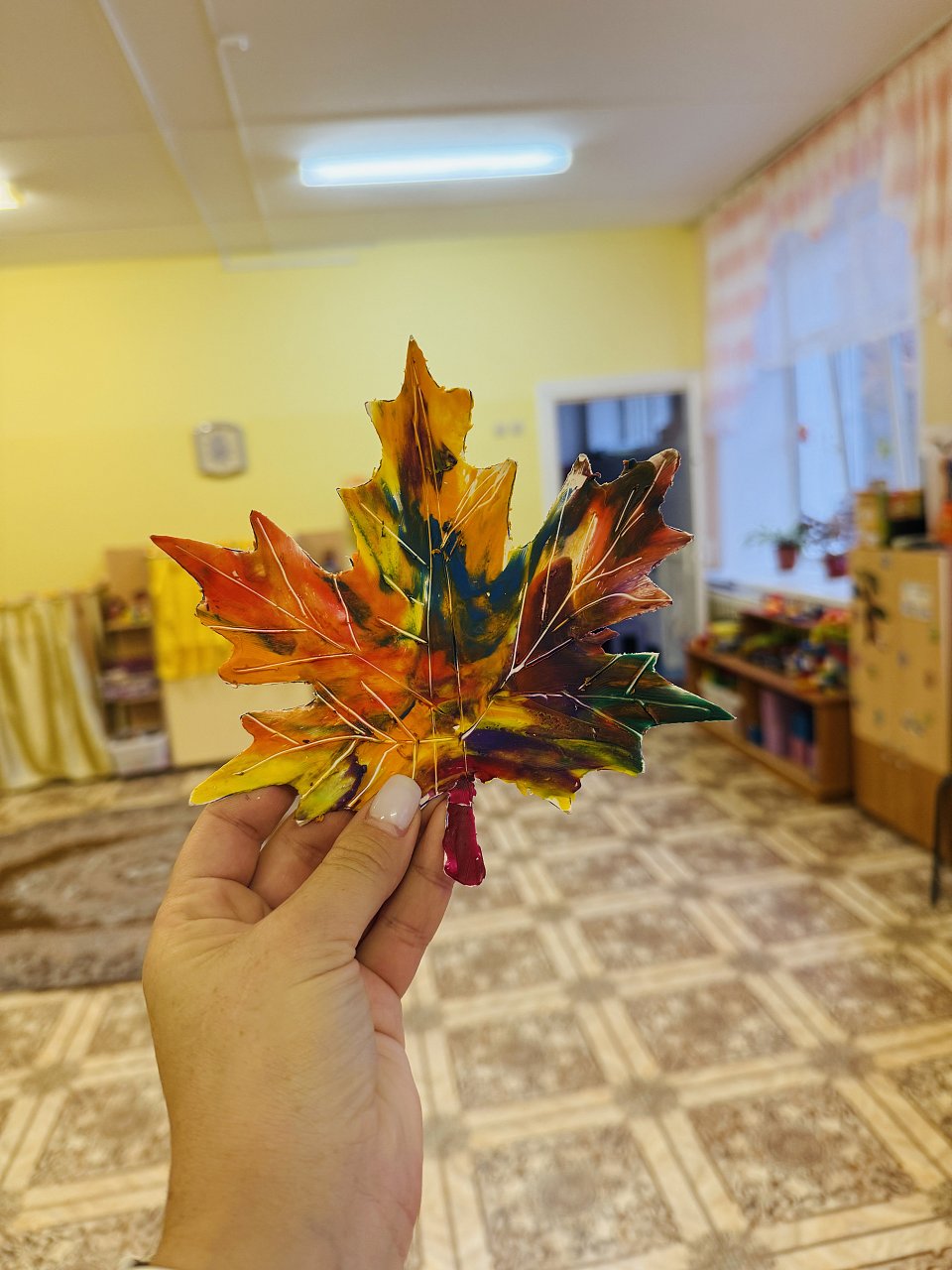 Пластилинография. Раскраска осеннего листика пластилином. Возраст 6 лет